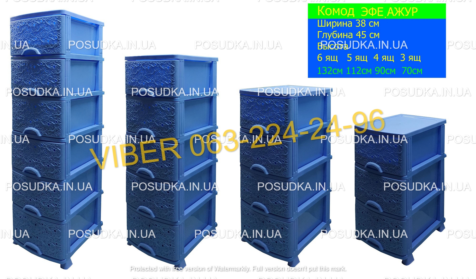 Комод голубой пластиковый Ажур на 3 ящика Efe Plastics