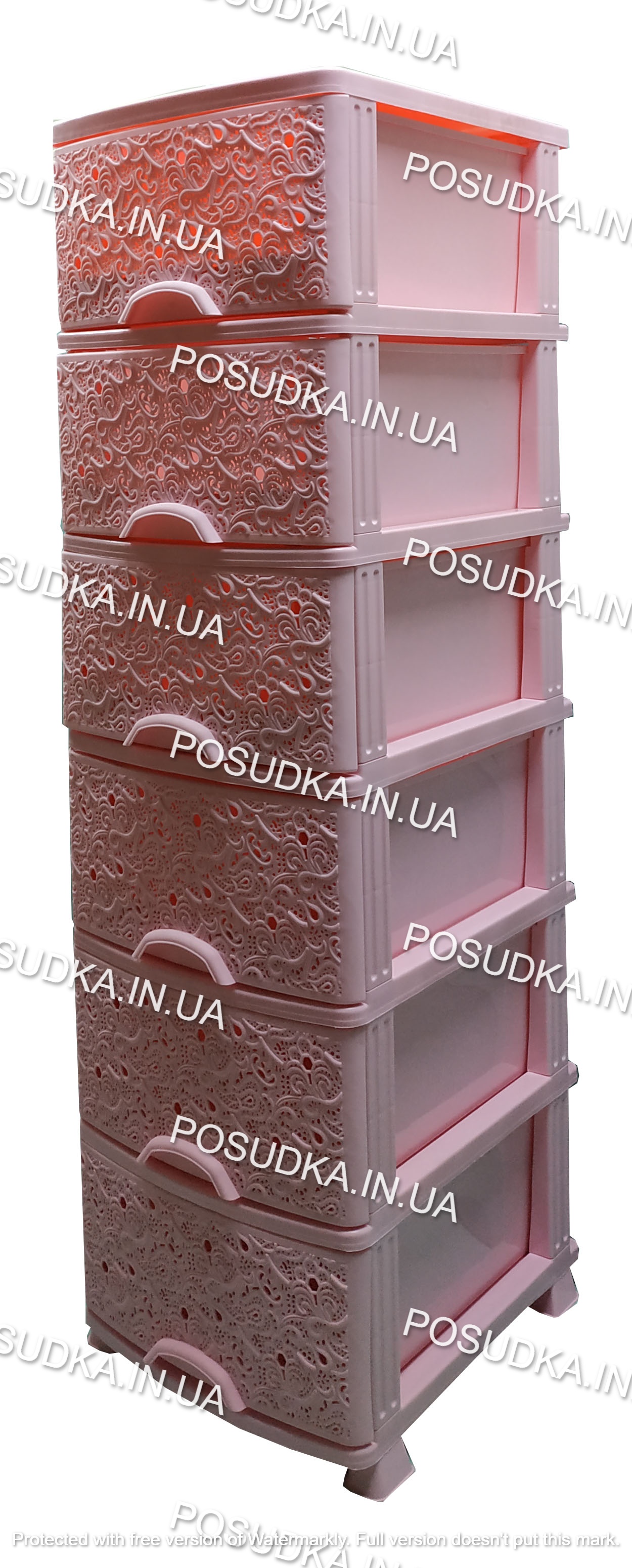 Комод пластиковый для хранения Ажур розовый на 6 ящиков Efe Plastics