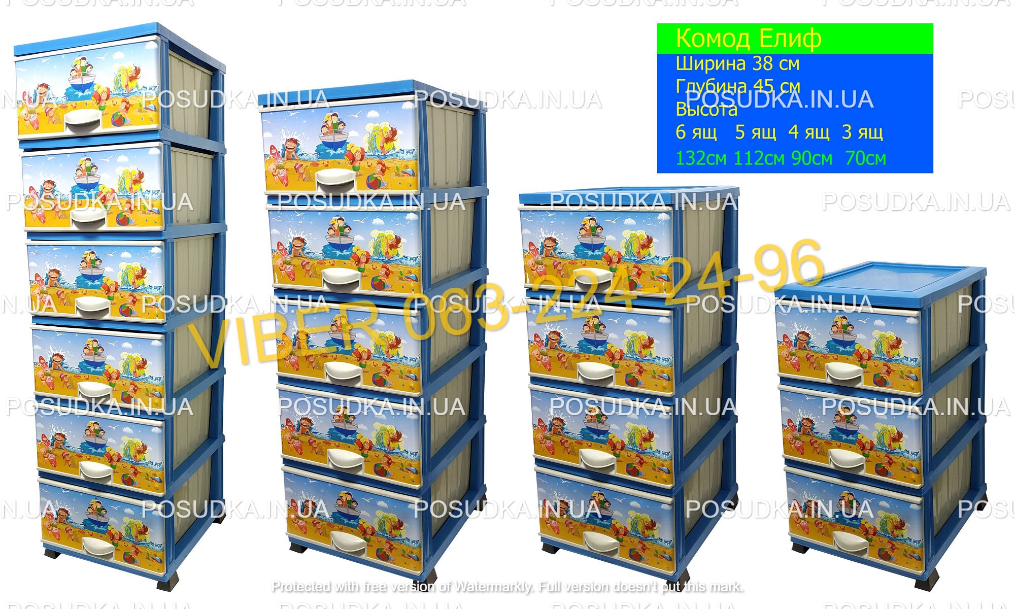 Комод для мальчика пластиковый Море на 6 ящиков Elif Plastik 298-40-6
