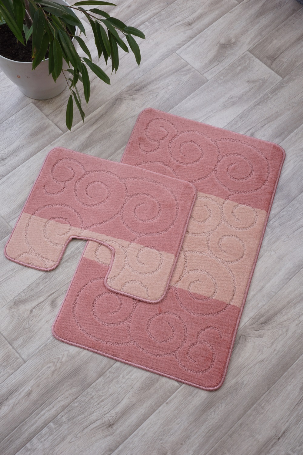 Комплект впитывающих ковриков для ванной комнаты на резиновой основе светло-розовый