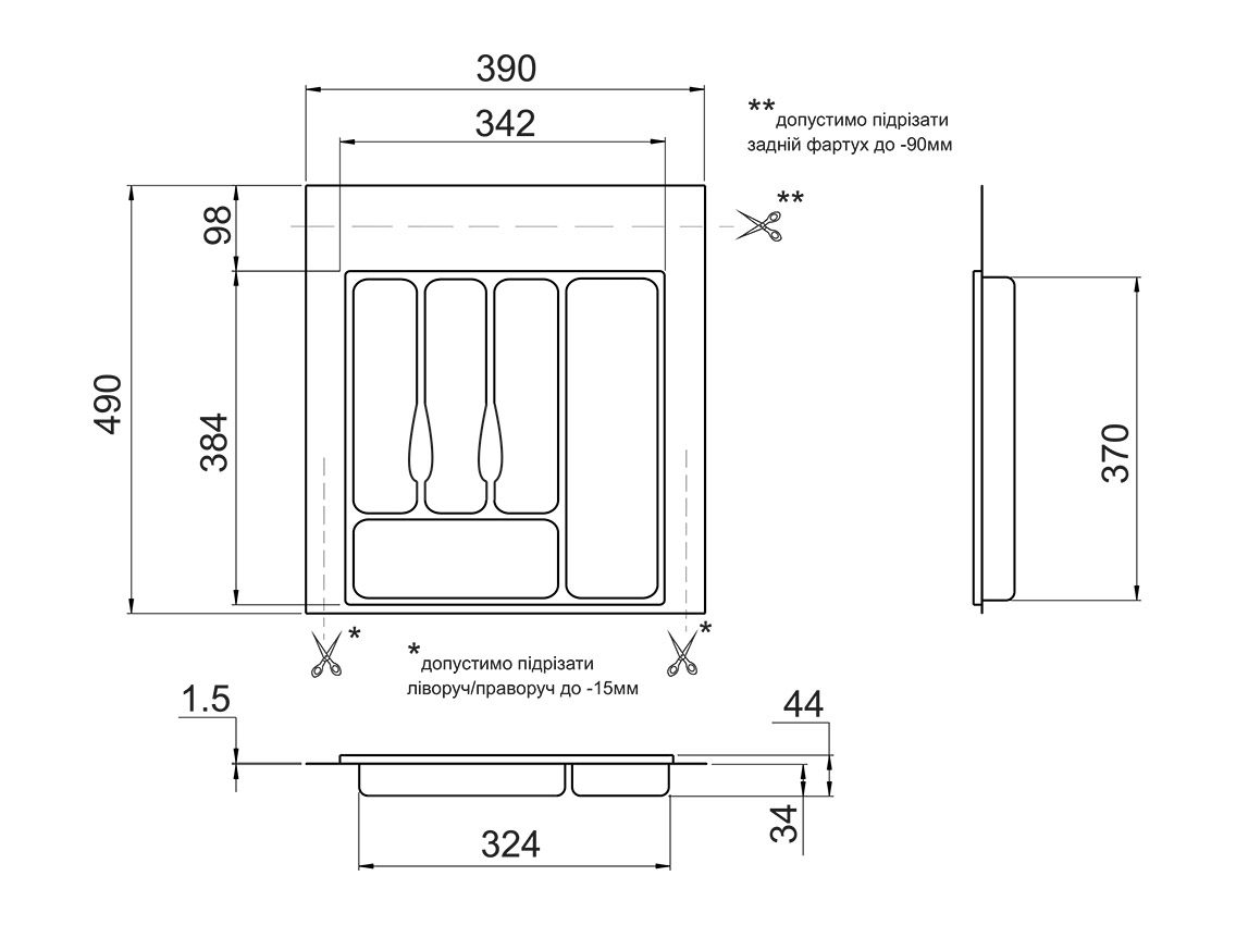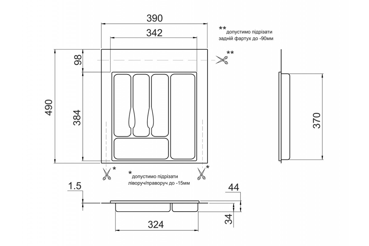 Лоток-Вкладыш в Ящик Volpato для столовых приборов 390х490 мм Серый