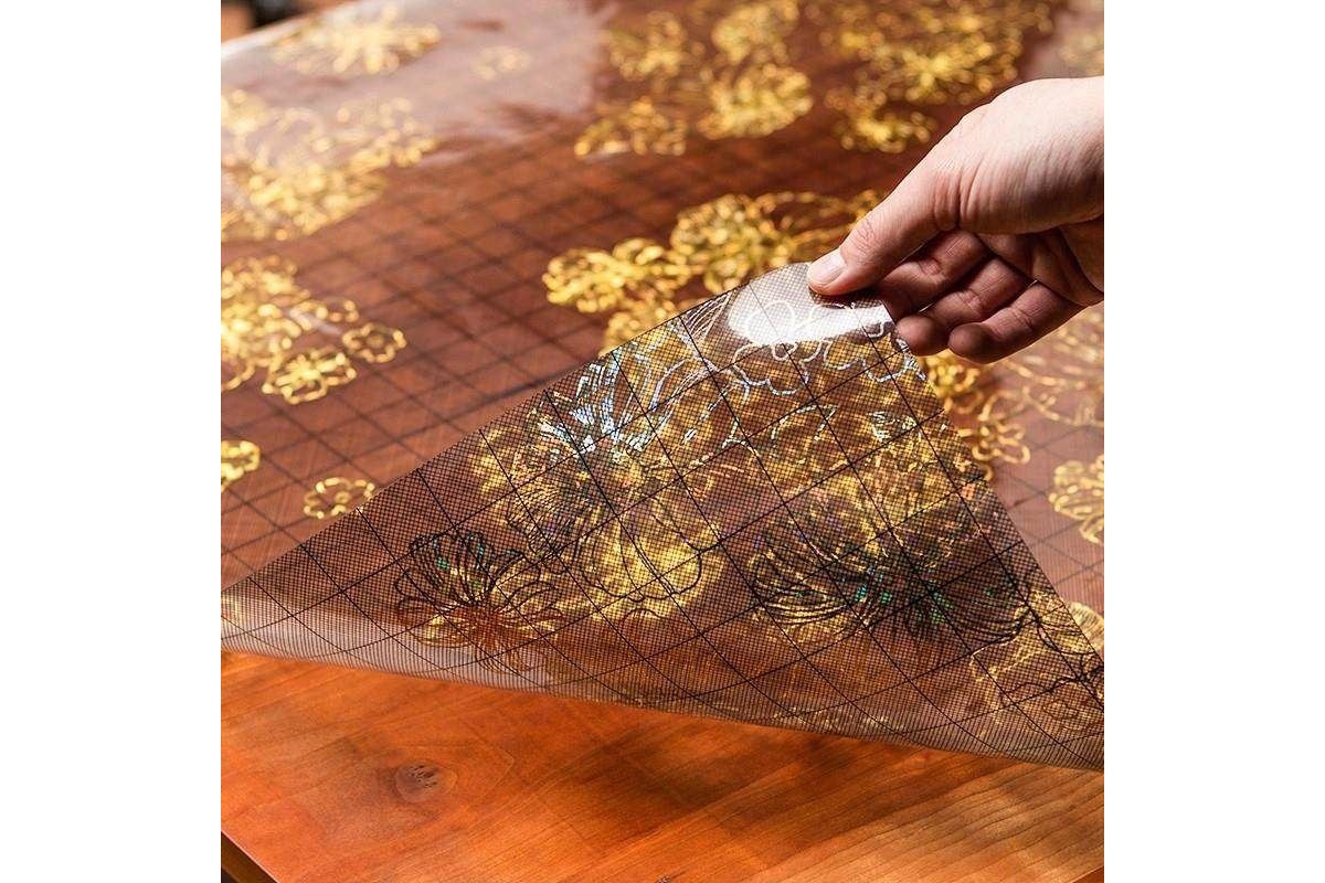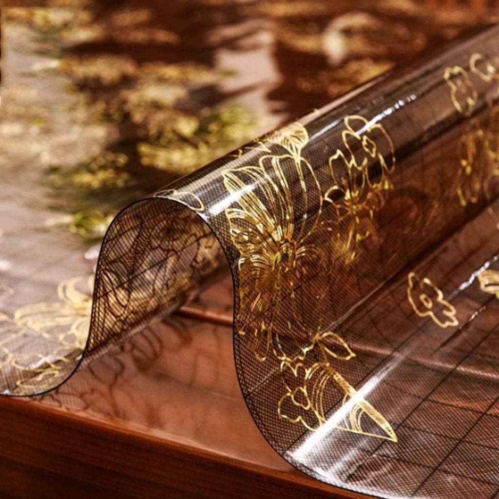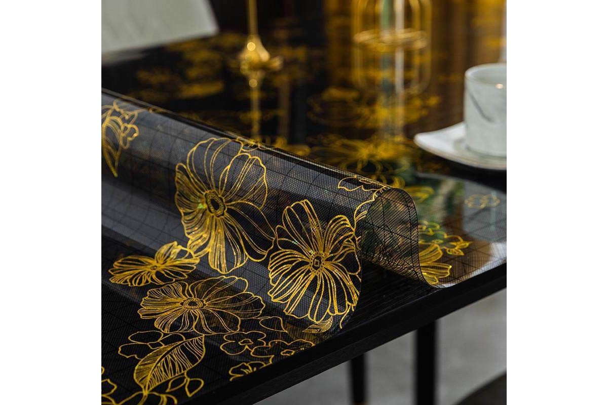 Жидкое стекло для деревянной мебели с полупрозрачным фоном и цветочным узором — это идеальное решение для тех, кто хочет защитить натуральную деревянную поверхность, сохраняя и подчеркивая ее естественный вид. Благодаря легкому прозрачному эффекту, текстура дерева остается видимой, а нежные цветочные завитки добавляют столу изысканности. Кроме эстетической привлекательности, силиконовая пленка Chrysanthemum GOLD оберегает поверхность мебели от царапин, пролитых напитков, жира и других загрязнений, что делает ее идеальным выбором для кухни, гостиной или столовой. Размер и форма прозрачного покрытия из ПВХ подгоняется под ваш стол. Гибкое защитное покрытие легко моется, не теряет привлекательного вида со временем и прекрасно подходит для ежедневного использования. Если вы хотите не только украсить интерьер, но и уберечь деревянную поверхность от повреждений, то жидкое стекло — это именно то, что вам необходимо!