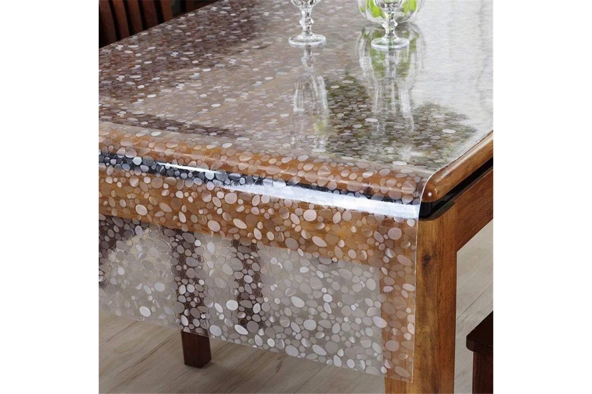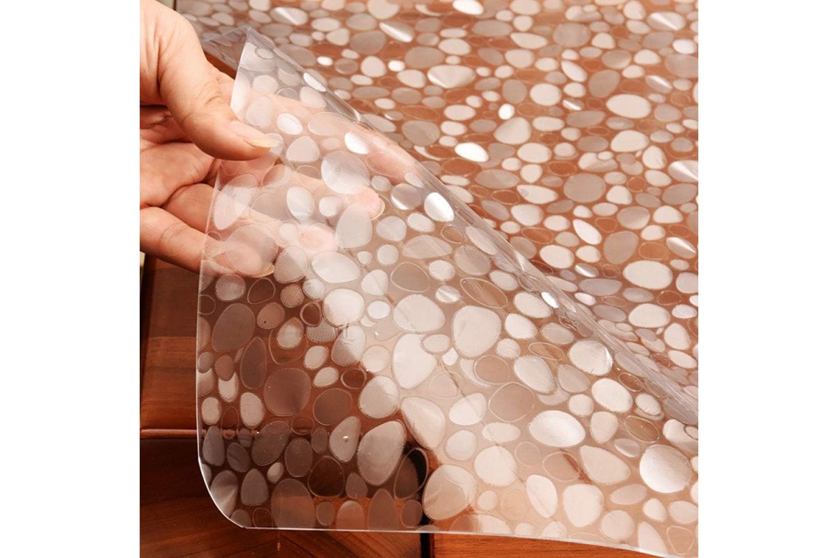 Мягкое стекло на круглый стол с рисунком — это оптимальное сочетание эстетики и функциональности. Рисунок в виде камушков добавляет особого шарма интерьеру, создавая атмосферу гармонии и природной красоты. Однако такое гибкое покрытие не только украшает стол, но и эффективно защищает его от механических повреждений, сложно выводимых пятен и влаги. Силиконовая защитная скатерть плотно прилегает к поверхности, не скользит и не скручивается по краям. Кроме того, такая прозрачная накладка легко очищается, не требует особого ухода и остается безупречной даже после длительного использования. Толщина материала ПВХ составляет 1,8 мм, что обеспечивает долговечность и прочность клеенки, делая ее отличным выбором для ежедневного использования. Гибкая накладка из силикона подходит для круглых столов разных размеров и может быть откорректирована по ширине вашей мебели. Жидкое стекло — это выгодное решение для тех, кто хочет добавить красоты и блеска в свой интерьер и одновременно сохранить мебель в идеальном состоянии.