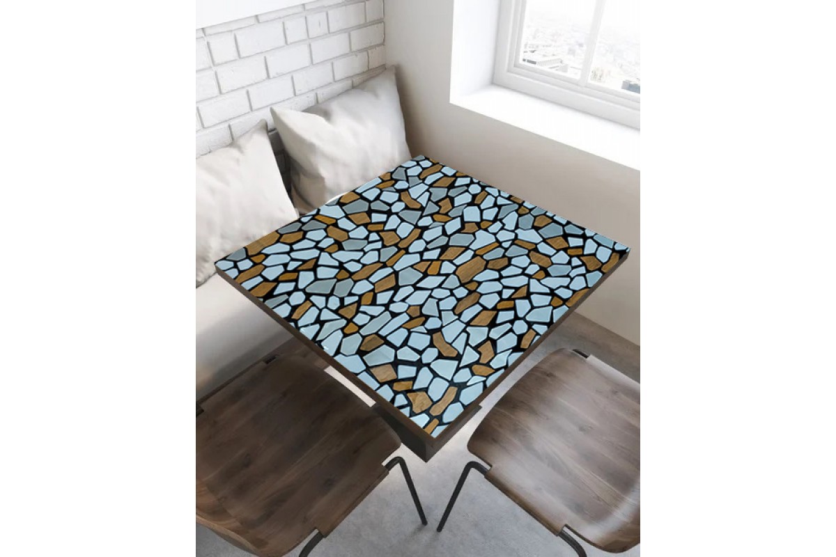 Жидкое стекло представляет собой удачную альтернативу классическим скатертям из ткани. Силиконовая накладка дает возможность не только уберечь поверхность от различных повреждений в виде порезов, царапин, потертостей и загрязнений, но и создает уютную атмосферу. Необычный дизайн клеенки в стиле мозаики с голубыми и коричневыми тонами гармонично впишется в любой интерьер. Интересно, что защитная гибкая пленка способна не только подчеркнуть красоту мебели, но и скрыть возможные дефекты на поверхности. Благодаря толщине ПВХ в 0,8 мм, скатерть сохраняет гибкость, легко чистится и не пропускает жидкости. Мягкое защитное стекло прекрасно подойдет на столы разных видов и размеров — от больших обеденных до маленьких кофейных и журнальных. Если вы цените практичность и стиль, то силиконовое покрытие для защиты мебели — это именно то, что вам необходимо!