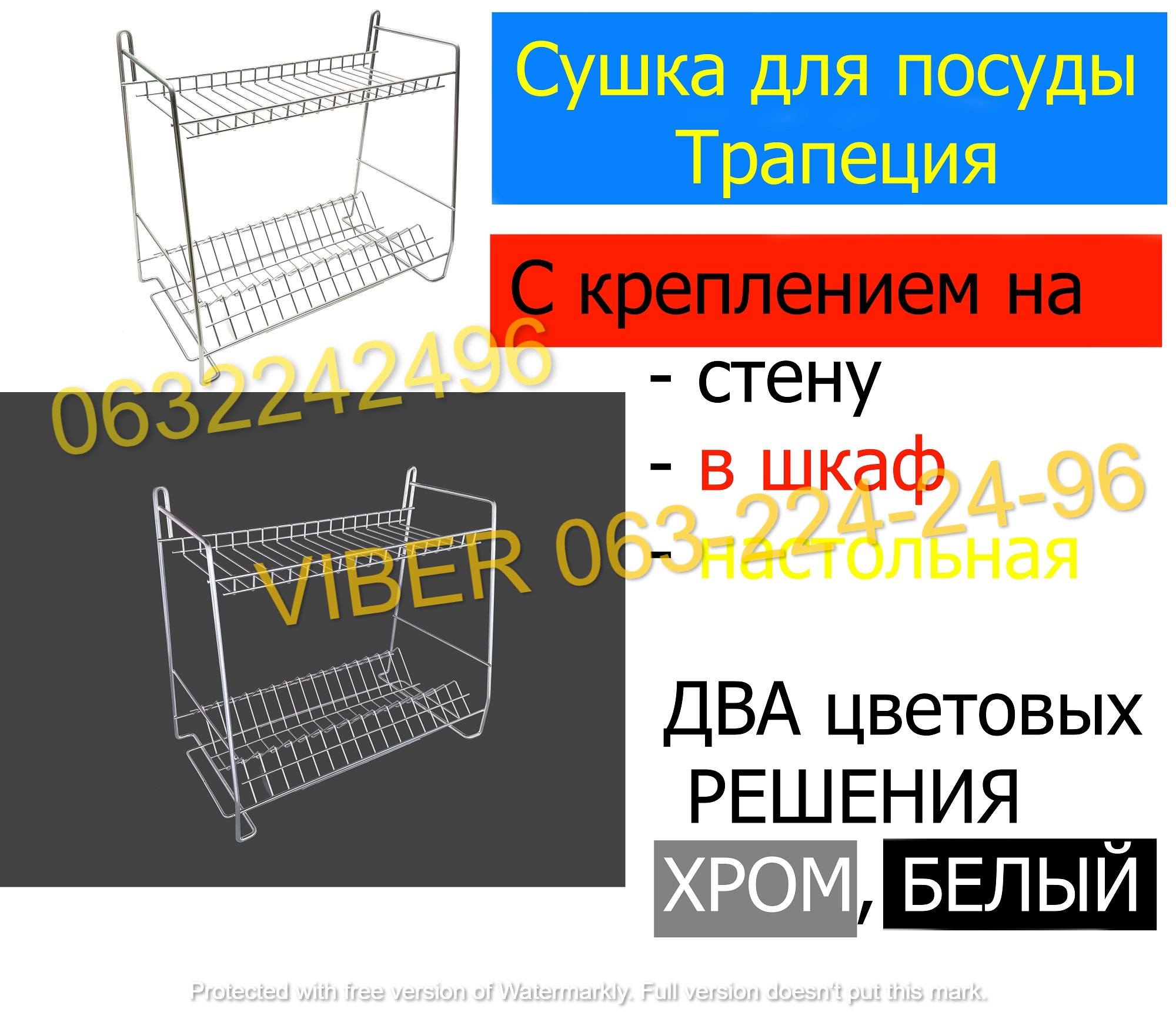 Настенная сушилка для посуды 400 мм 2-ярусная хром ST-24222