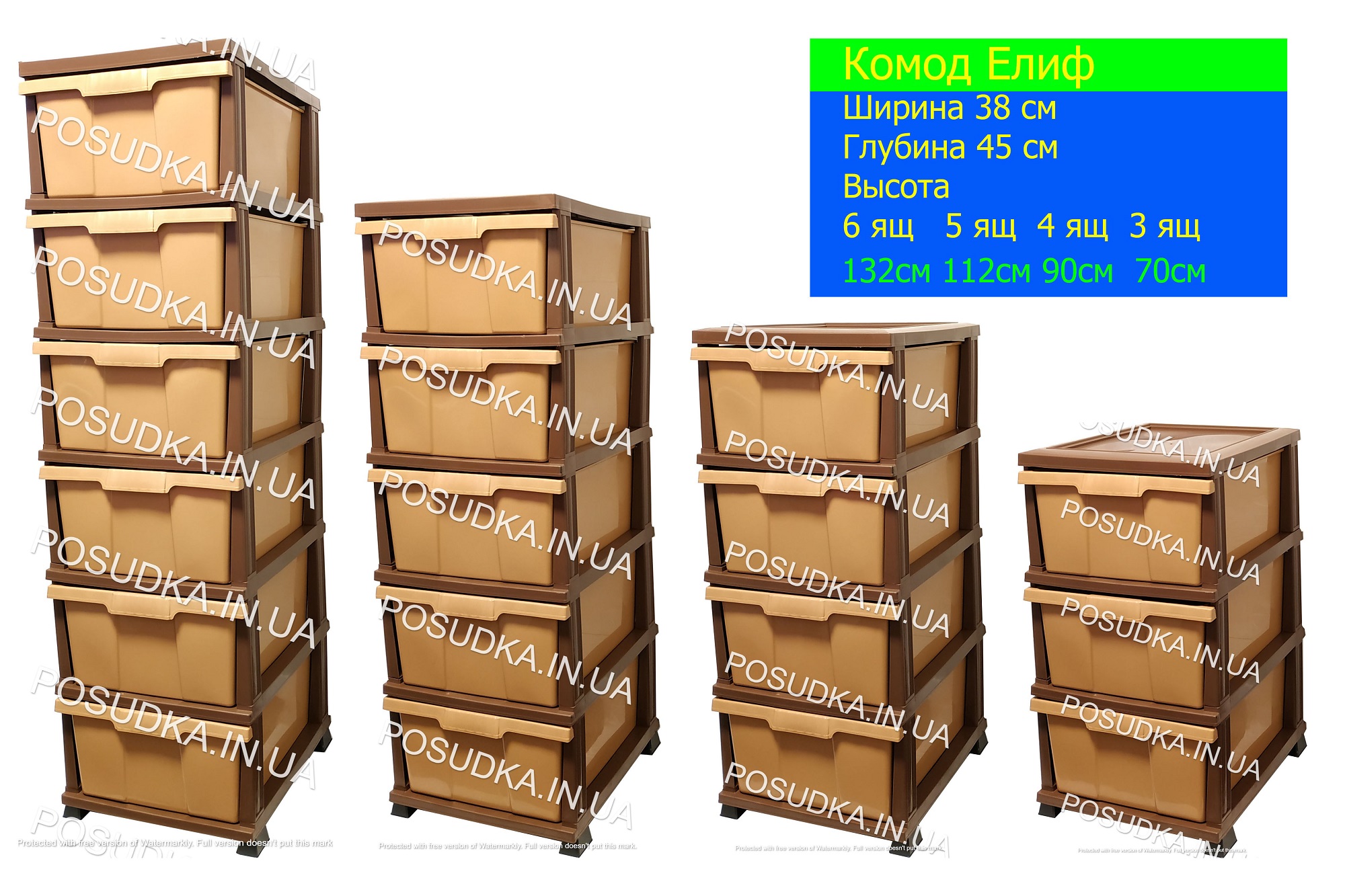 Комод пластиковый рисунок Кофе темный на 4 ящика Elif Plastik