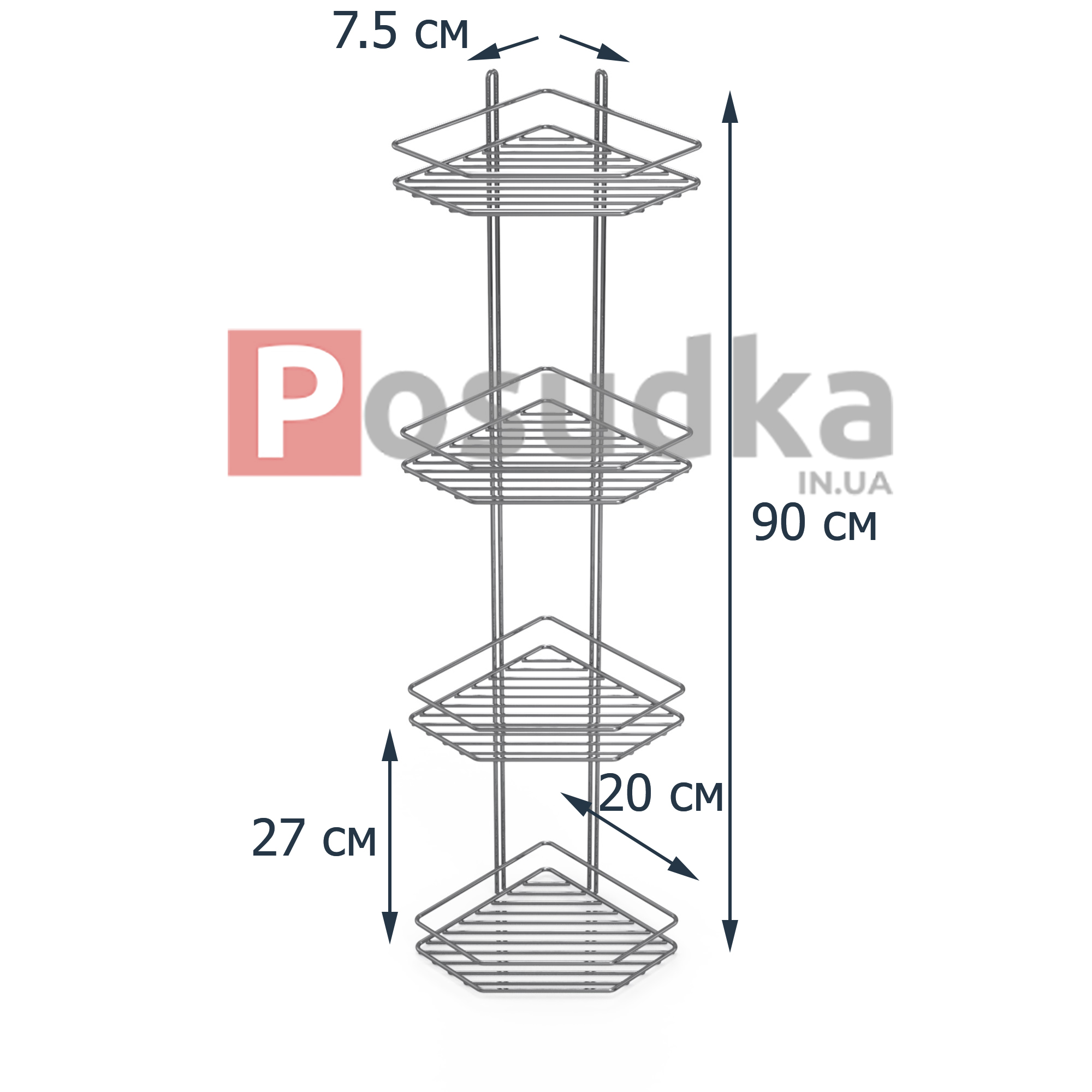 Полочка угловая 20см 4-ярусная 2-контурная хром