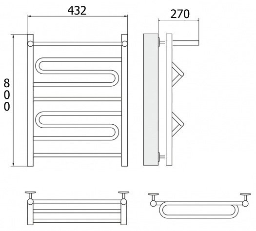 Полотенцесушитель с полочкой 40*80 водяной ZIGZAG из нержавеющей стали для ванной