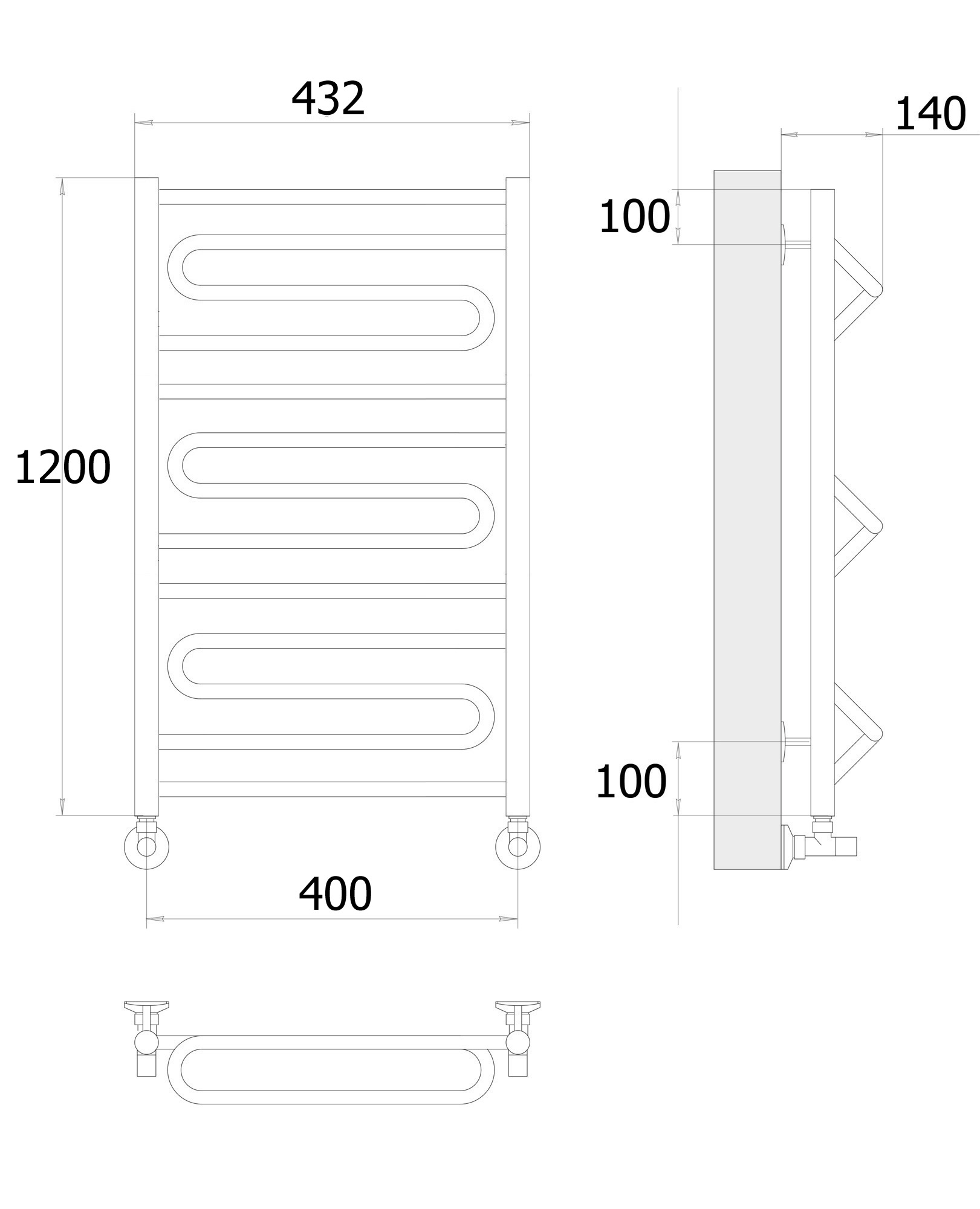 Полотенцесушители водяные с универсальное подключением ZIGZAG 40*120 нержавейка черный цвет