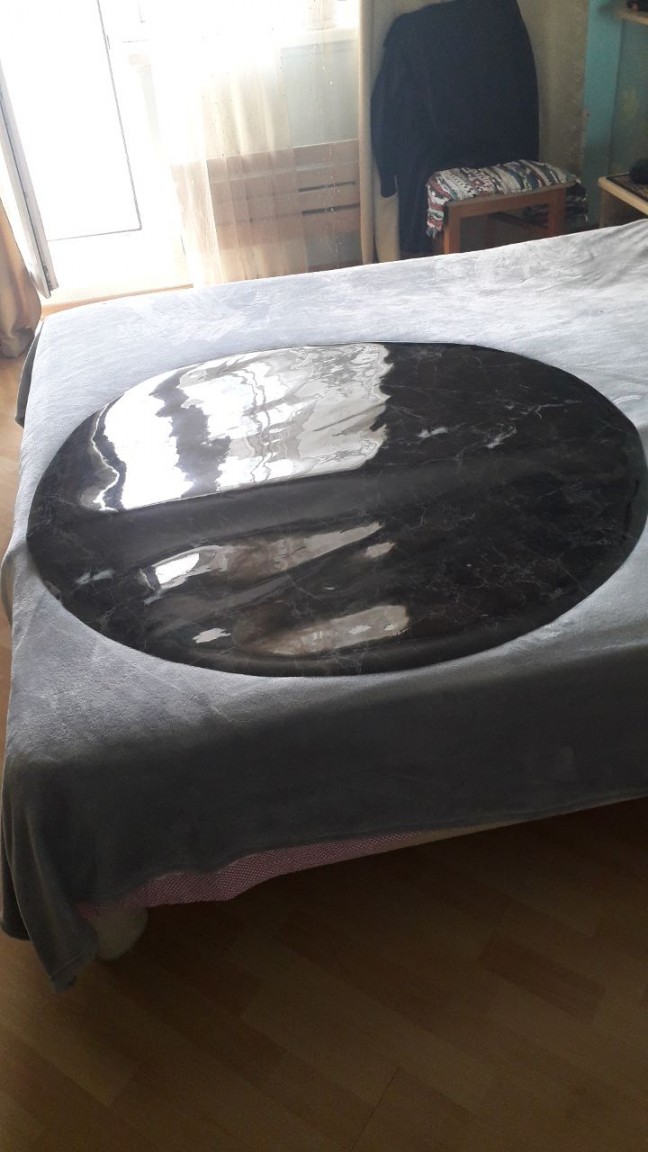 Замовив на скляний кухонний стіл. Потрібно було не прозоре покриття. Вибрали чорний мармур. Вирізали на запит діаметром 110 см, упаковка супер. Дійшло Укрпоштою за три дні... Якість матеріалу поки що (без експлуатації) відповідає очікуваному. Ціна товару - конкурентна...Спасибі.