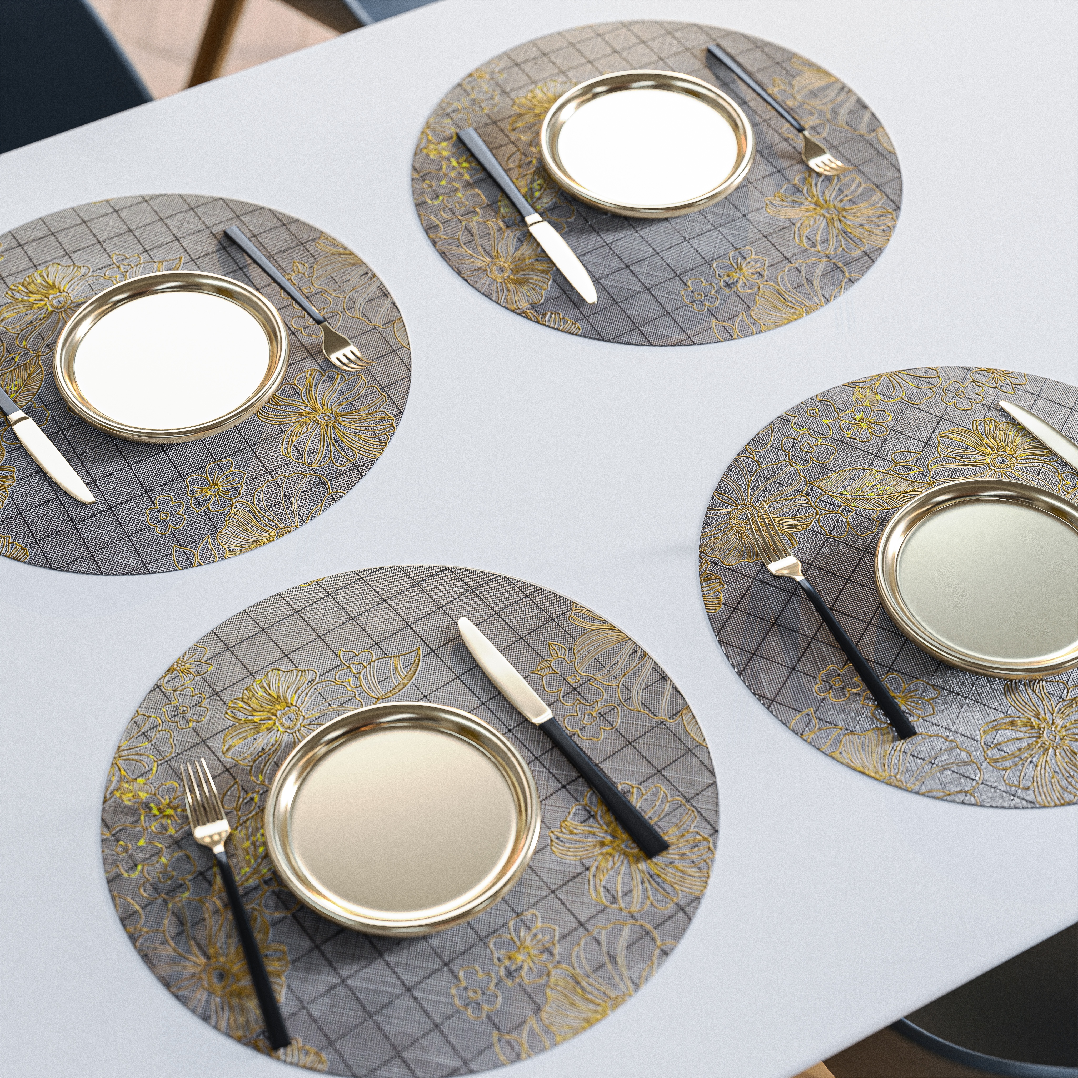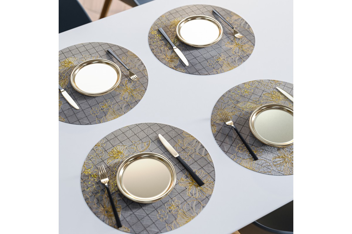 Салфетки на стол под тарелки силиконовые золото круглые