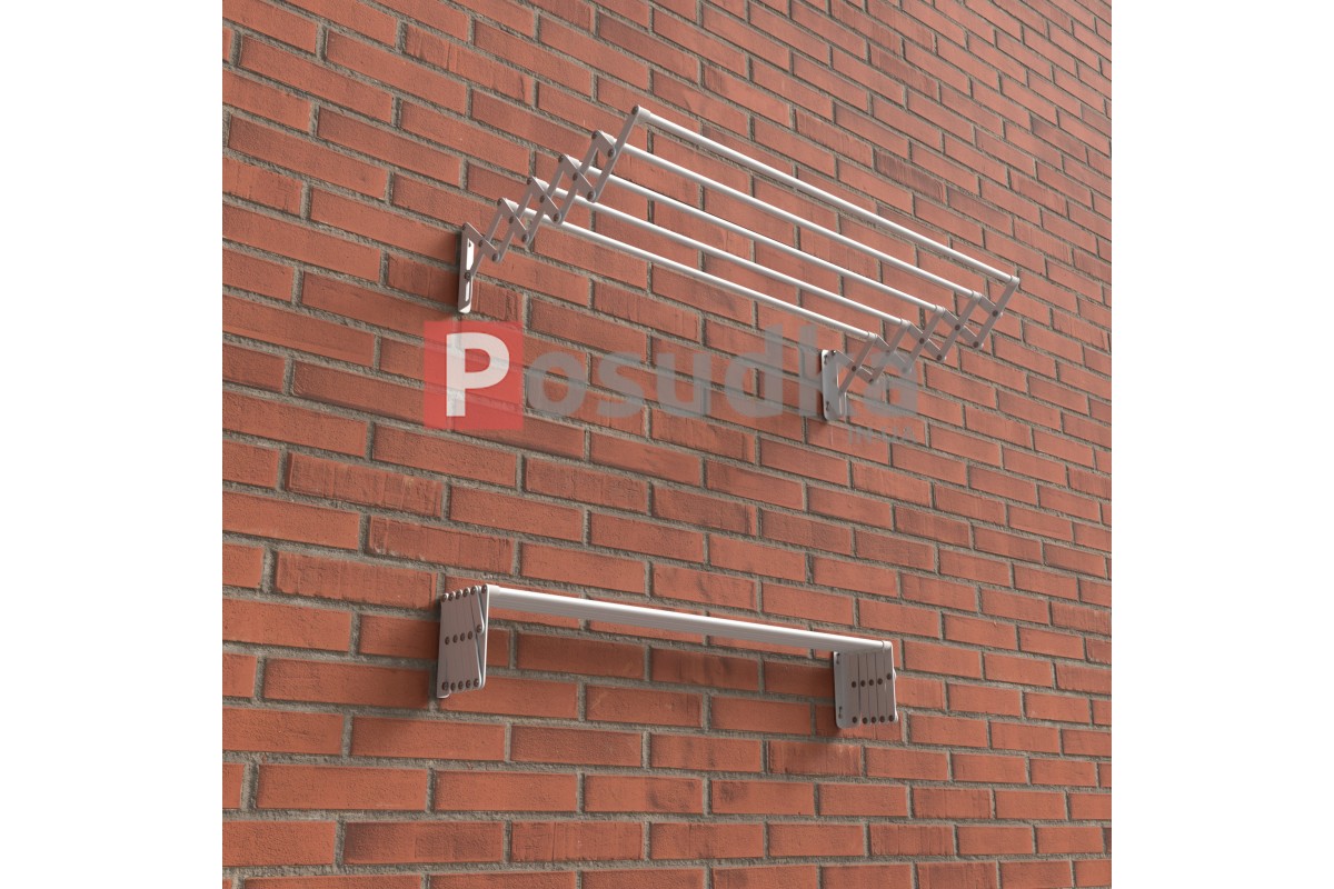 Занимает минимальное протранство в сложенном состояние 10 см, а при необходимости раскладывается на расстояние до 45-ти см от стены, создавая удобную в использовании конструкцию. Состоит из 5 прутьев, расстояние между ними 9 см, сушилка выпускается в различных ширинах от 60 см до 160 см с шагом 10 см. Допустимая нагрузка - 12 кг (при условии равномерно распределенного веса).