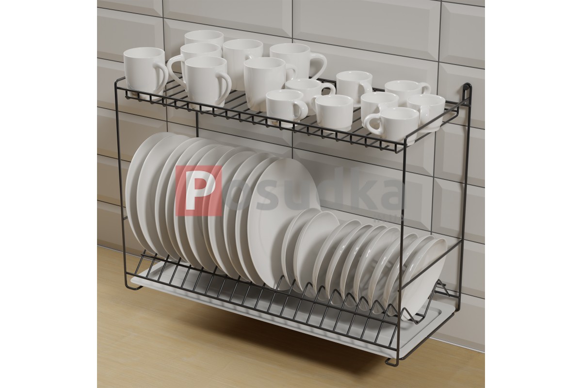Дворівнева сушарка для посуду 58 см із кріпленням на стіну чорна SP-26223