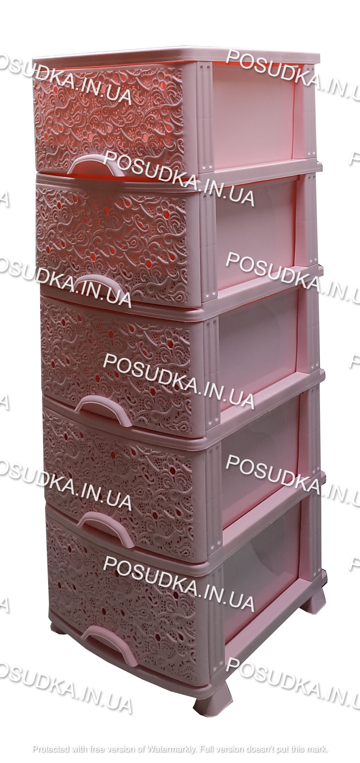 Комод універсальний рожевий із пластику Ажур 5 ящиків Efe Plastics