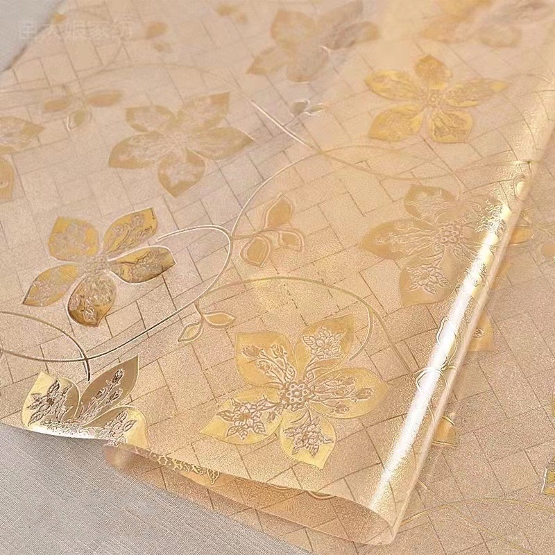 М'яке рідке скло з напівпрозорим золотистим фоном і витонченими красивими квітами - це справжній витвір мистецтва для вашого інтер'єру. Така силіконова клейонка стане чудовим доповненням до святкового або щоденного сервірування столу, додаючи йому розкішного вигляду. Глянцеве м'яке скло забезпечує надійний захист від вологи, подряпин, плям та високих температур. Модель захисної накладки з ПВХ FLOWERS GOLD ляже на будь-яку поверхню — розмір і форма клейонки ріжеться за параметрами стільниці, тому і овальні столи, і невеликі квадратні столики можуть бути прикрашені таким гнучким скатертиною. Крім того, прозора плівка із силікону досить практична у використанні, тому що легко чиститься, не втрачає блиску з часом і не ковзає по поверхні. Гнучка плівка чудово підходить для тих, хто цінує естетику та практичність у деталях.