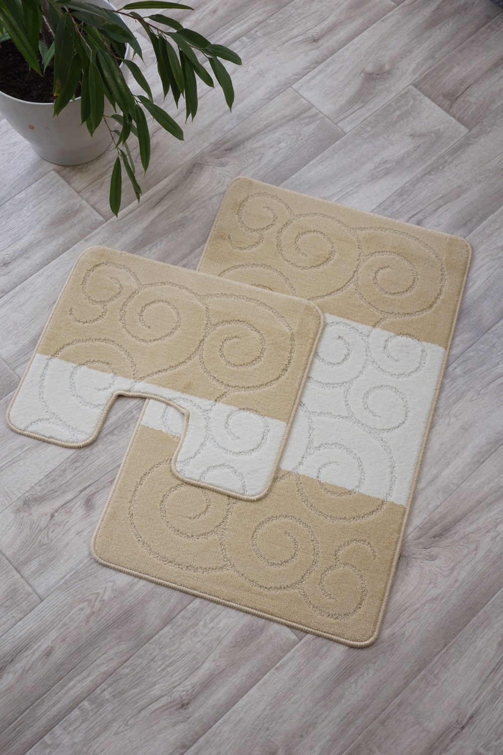 Комплект килимків для ванної MAXIMUS SILE BEIGE на гумовій основі світло-бежевий