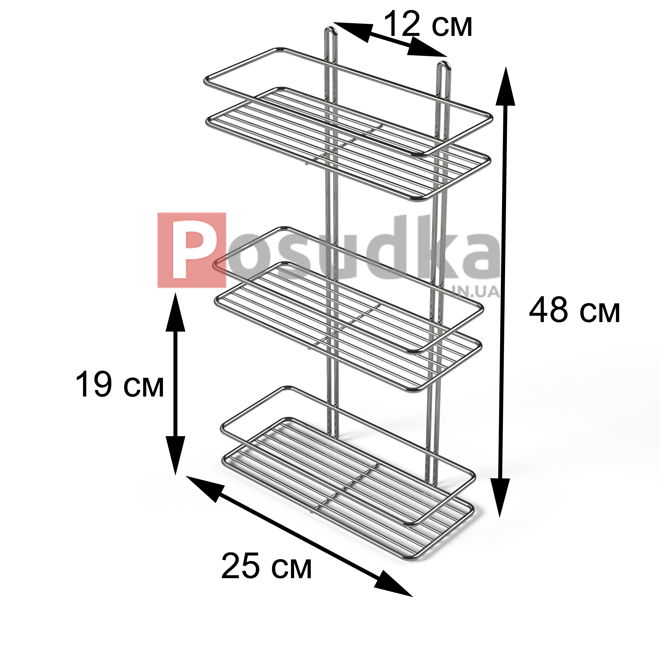 Полиця прямокутна 25 см 3-ярусна 2-контурна хром ПП-2532