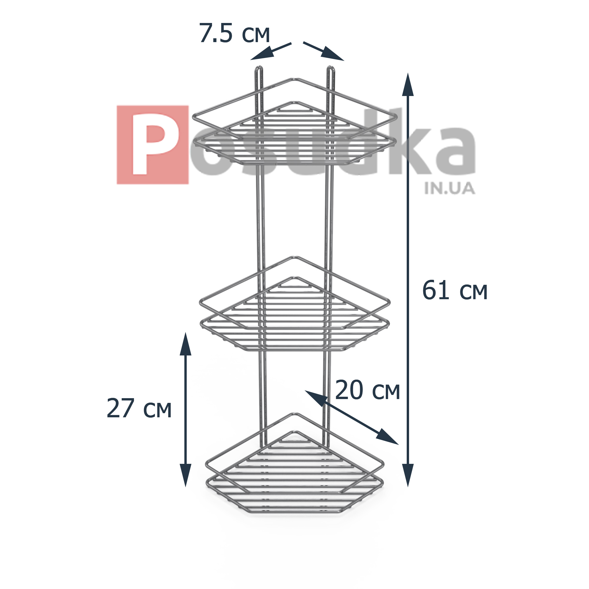 Полиця кутова 20см 3-ярусна 2-контурна хром