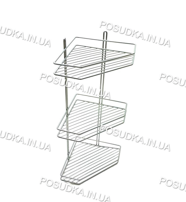 Полиця кутова 25см 3-ярусна 2-контурна хром