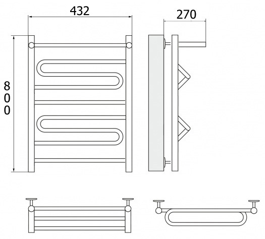 Рушникосушарки з поличкою купити з нержавіючої сталі водяної з нижнім підключенням ZIGZAG 40*80