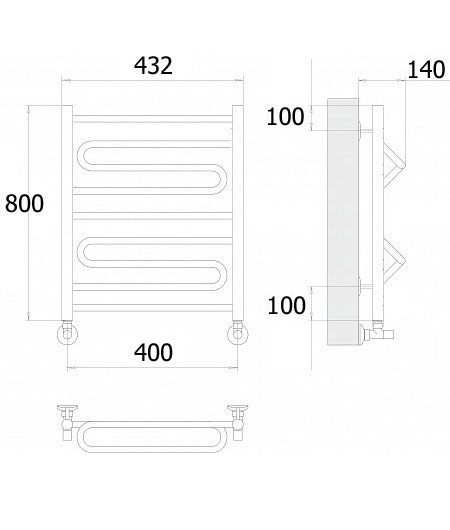 Рушникосушарки з нержавіючої сталі водяної з нижнім підключенням ZIGZAG 40*80 чорний колір