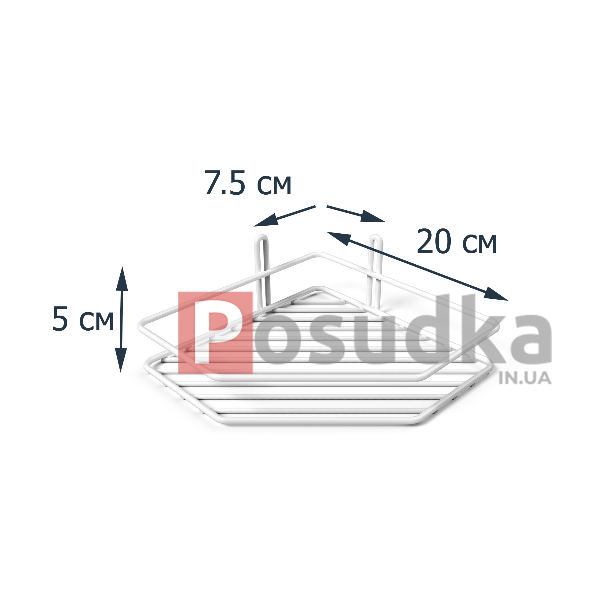 Кутова полиця у ванну одноярусна 20 см одноярусна біла