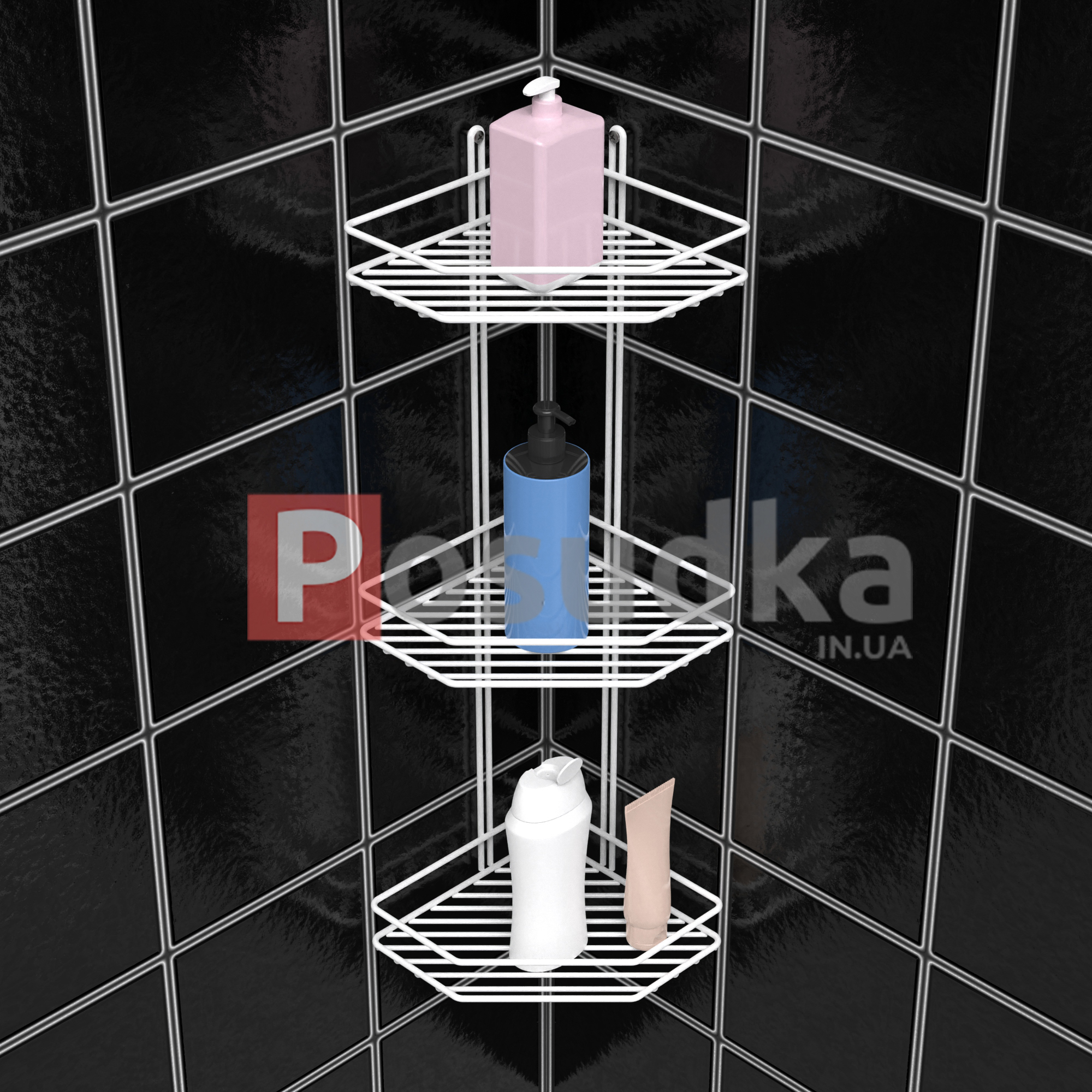 Угловая полка в ванную металлическая 20 см 3 яруса белая